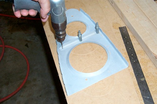 The center hole was drilled first and clecoed (Editor's note: A cleco is