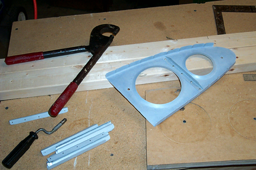 Flanging the lightening holes in the ribs make them fairly stiff but twist is still possible. To eliminate twist and to stiffen the ribs even further, the plans call for some 1/2" X 1/2" angles to be riveted between lightening holes. The angles are made from .025 2024-T3 aluminum.