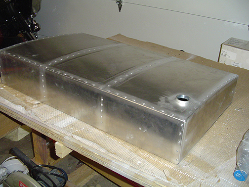 Notice the fuel filler flange in place. I have decided to go with the fuel filler flange and cap that Bob Barrows uses on the prototypes. I will cover how these were made on the Fuel Filler Cap page.